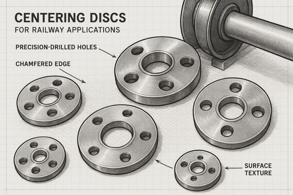 Centering Discs are specialized railway components designed to maintain the correct alignment and gauge for train wheels as they move along the rail tracks. They serve as precision guides, ensuring the wheels remain centered relative to the rails, which prevents derailment and reduces wear and tear.