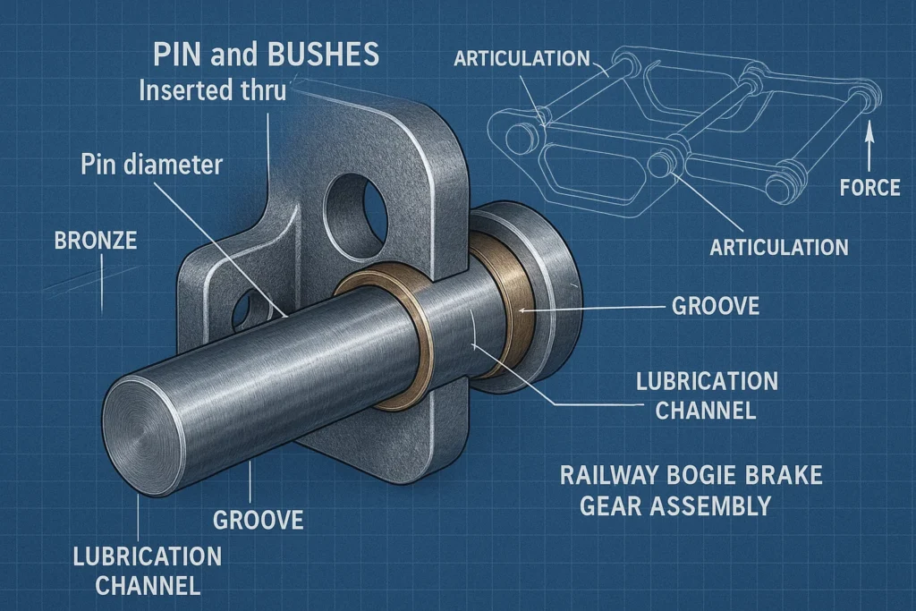 Pins and Bushes are essential railway components used throughout bogie assemblies, brake gear linkages, and suspension systems to permit controlled movement between connected parts while handling significant load stress.